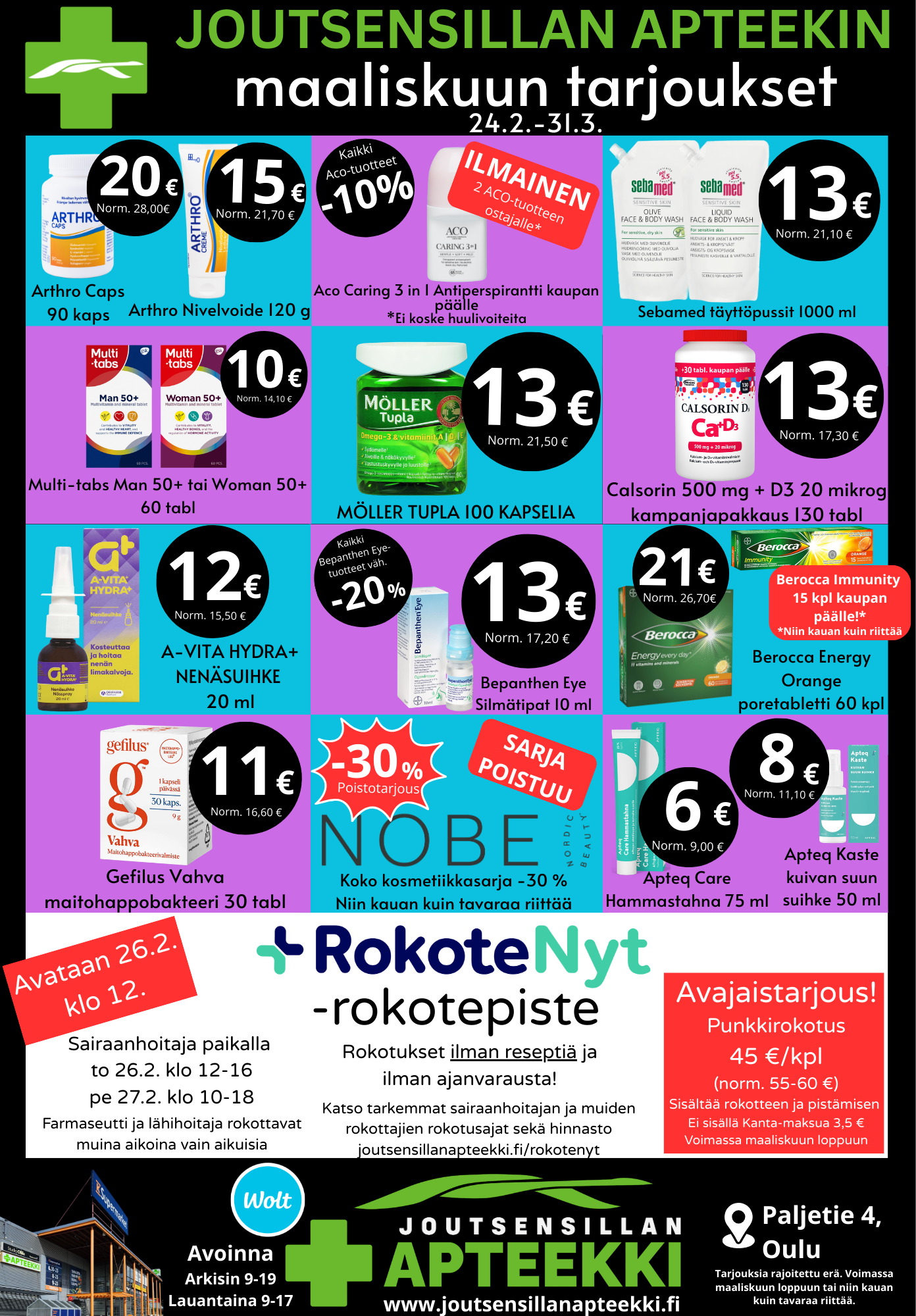 RokoteNyt -rokotepiste palvelee nyt Joutsensillan apteekissa. Hoida rokotusasiat kerralla kuntoon apteekkiasioinnin yhteydessä.